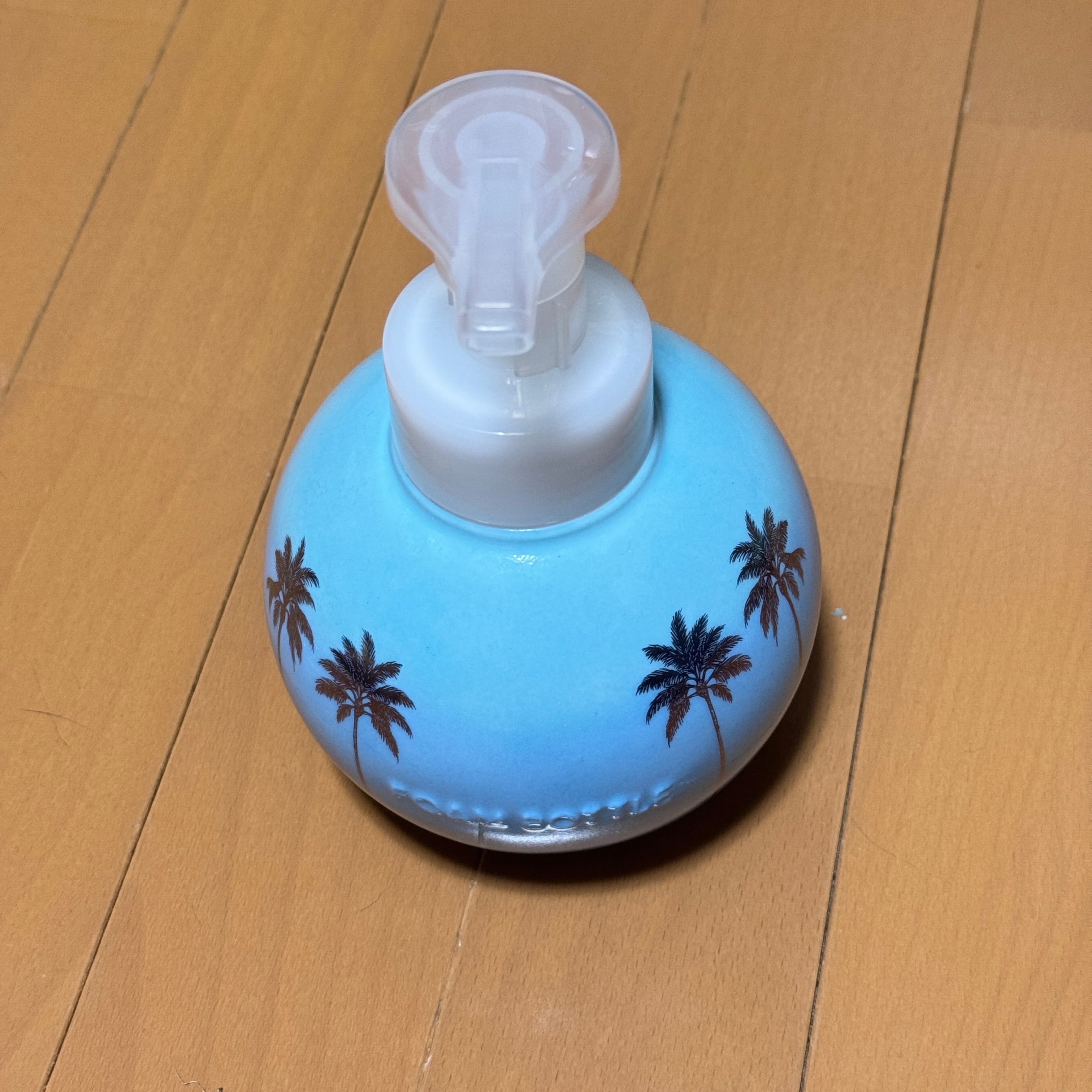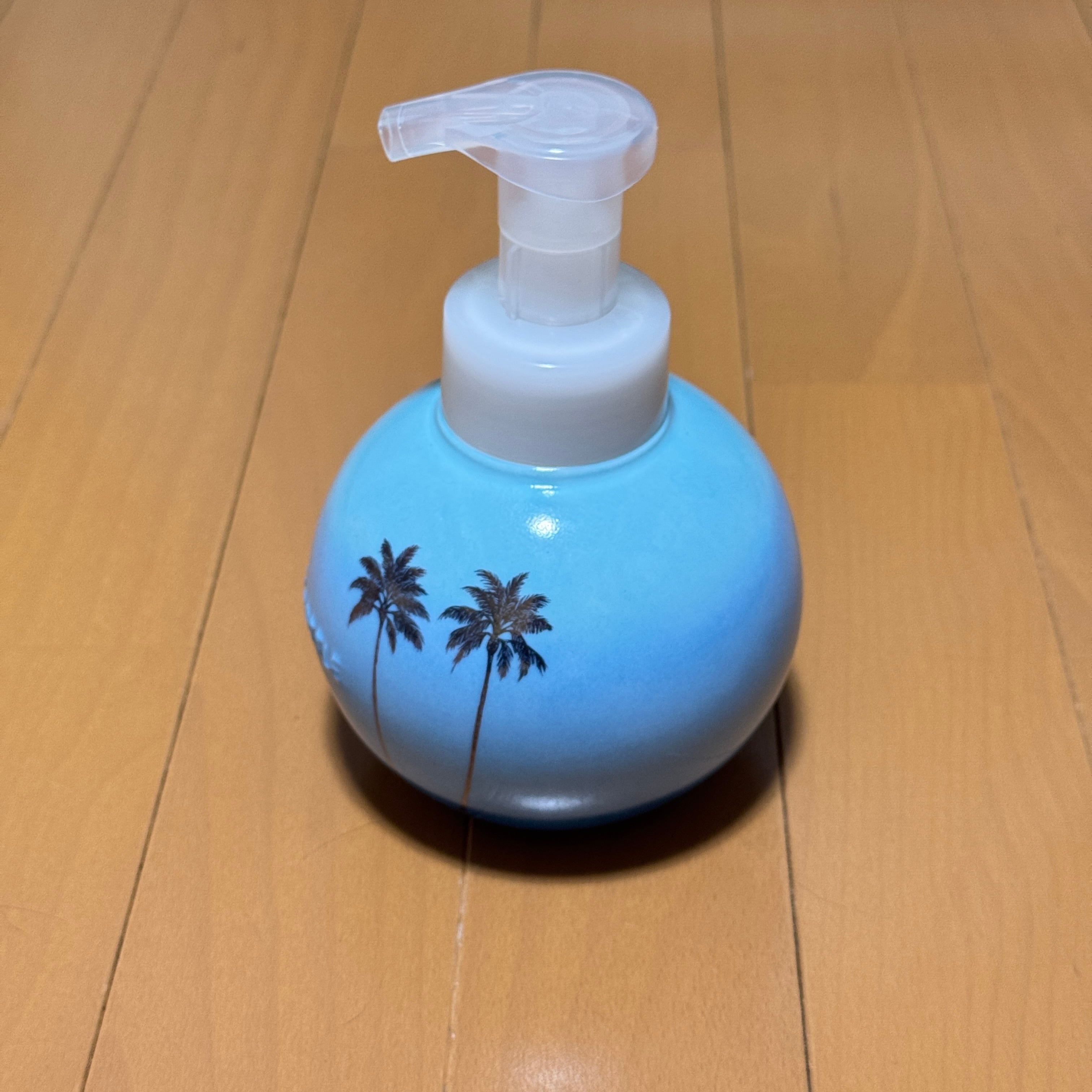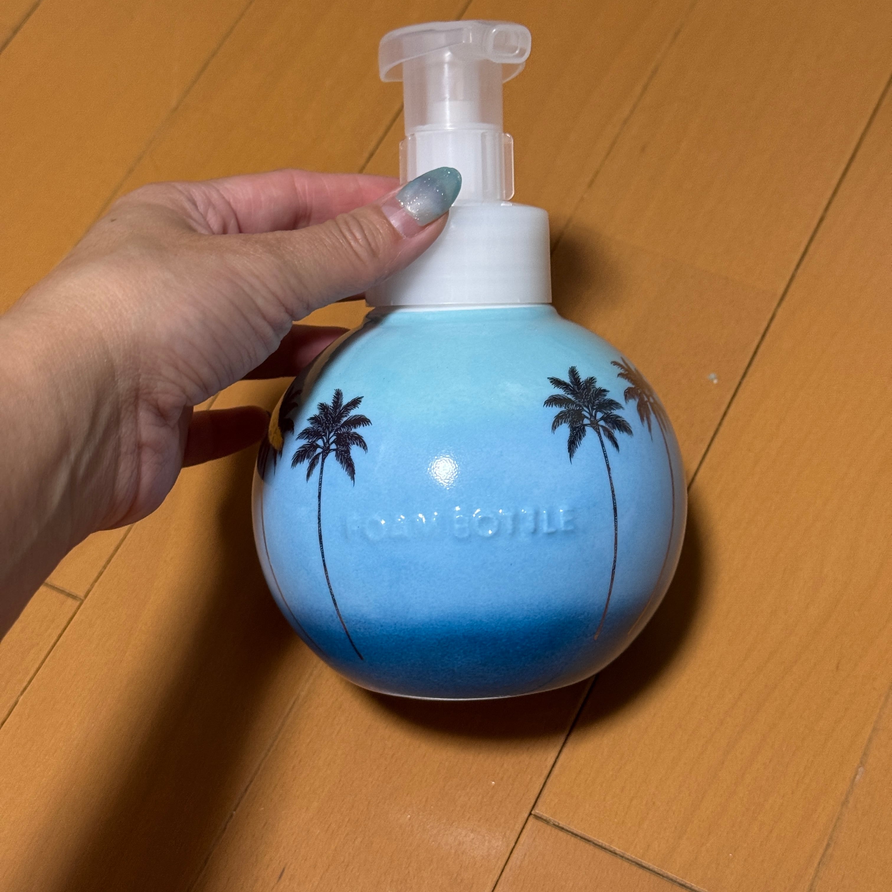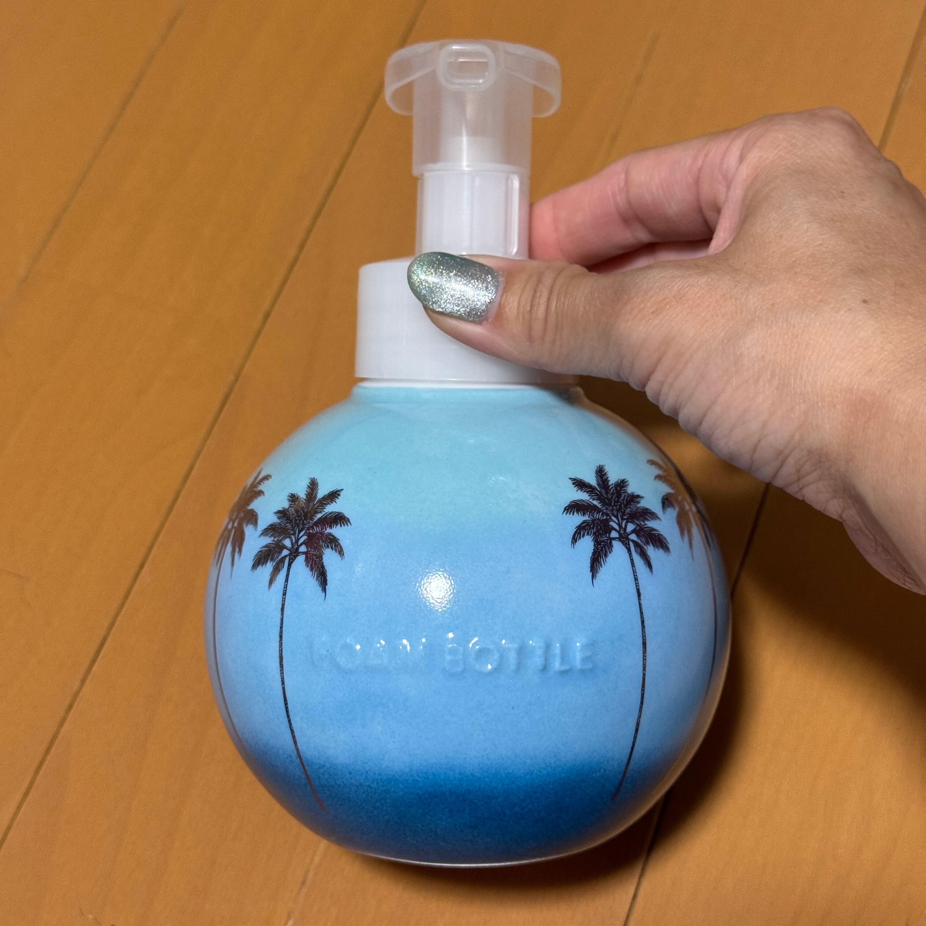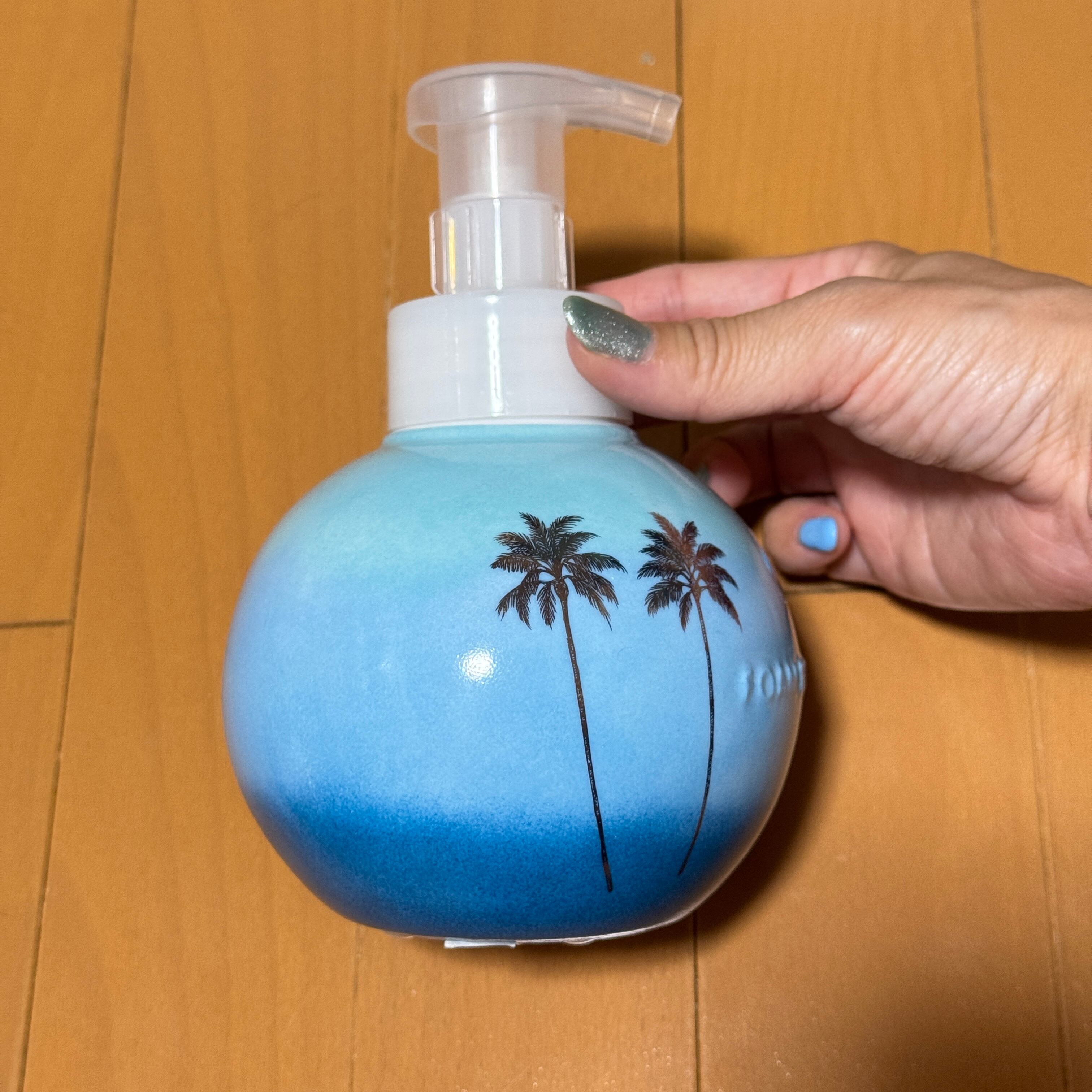 ラニカイビーチをイメージしたグラデーションにゴールドのヤシの木柄をあしらったフォームソープボトルです。