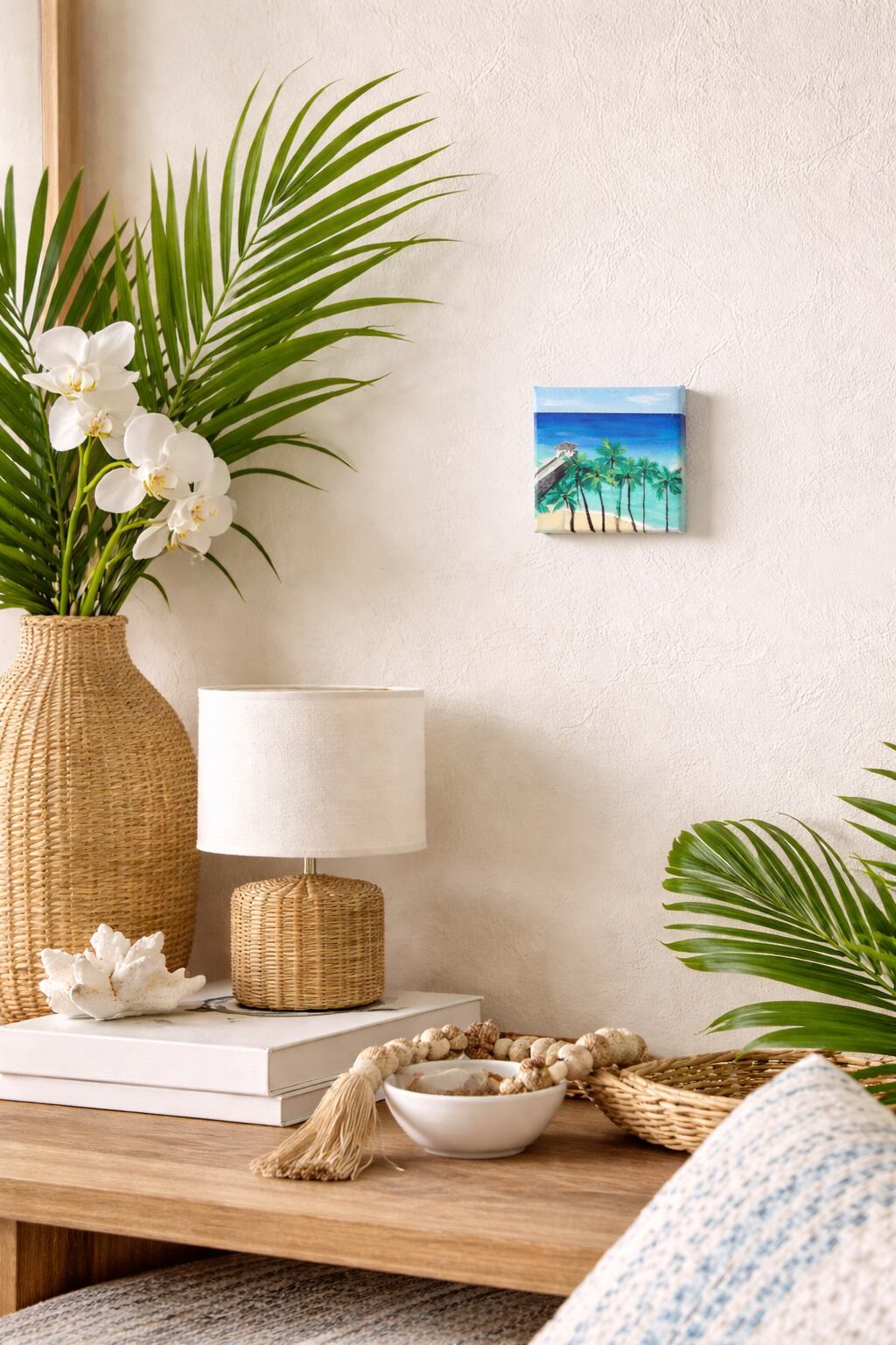 お部屋の棚やデスク、玄関、ベッドサイドなど、さりげない場所に南国の空気を運んでくれる一枚です。