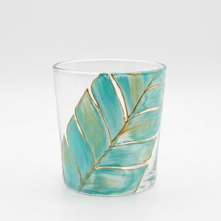 大きく描かれたバナナリーフが印象的な、アートピースのようなグラスです。