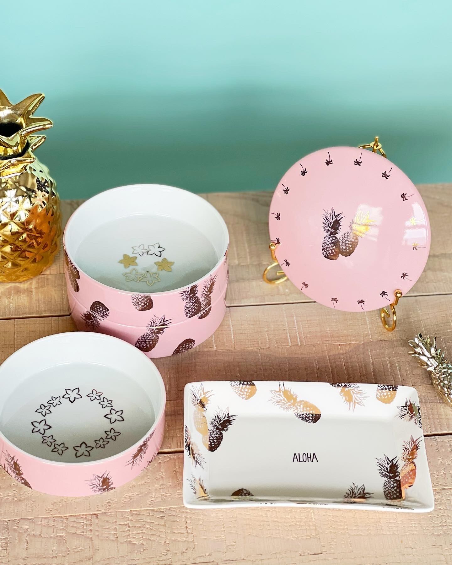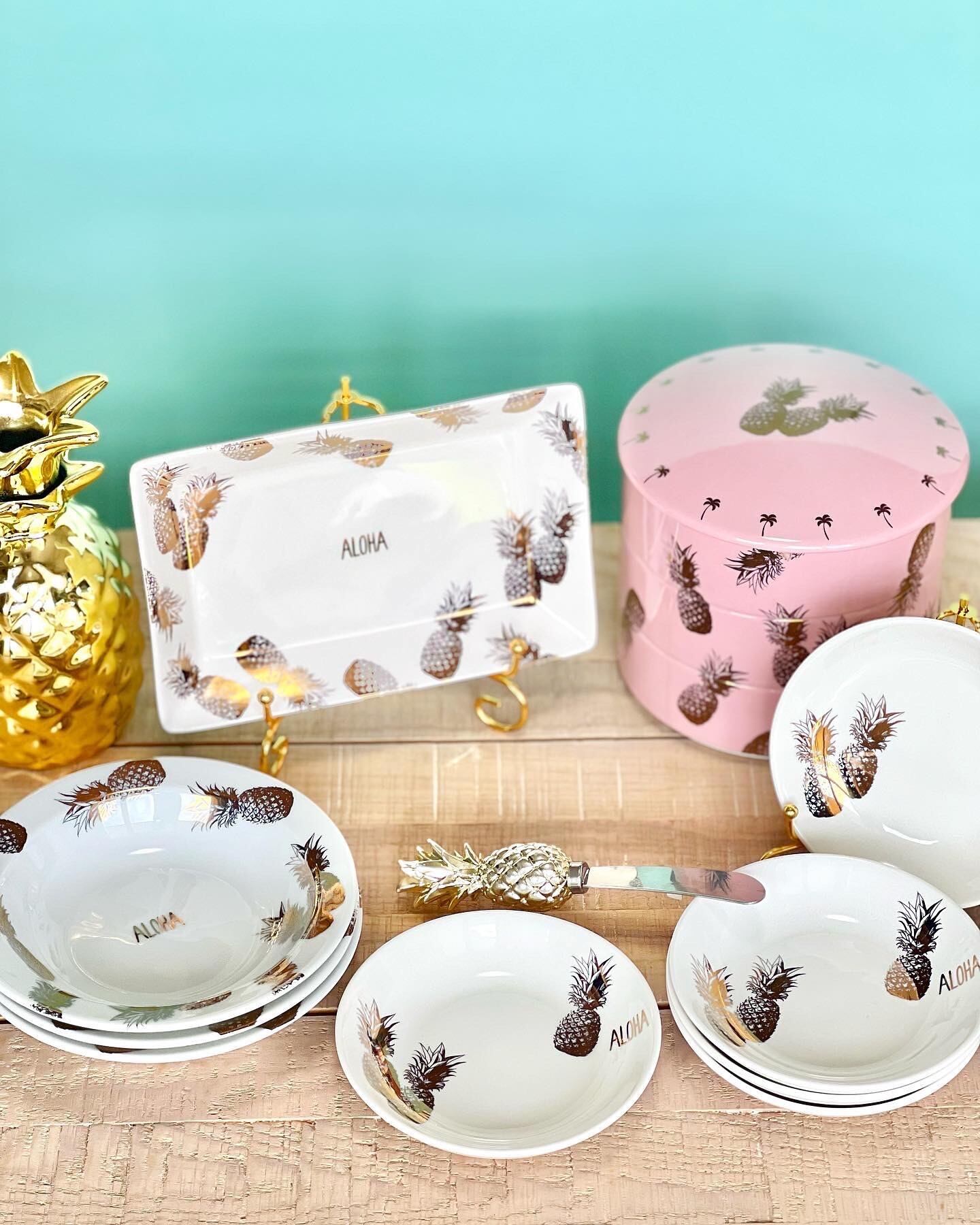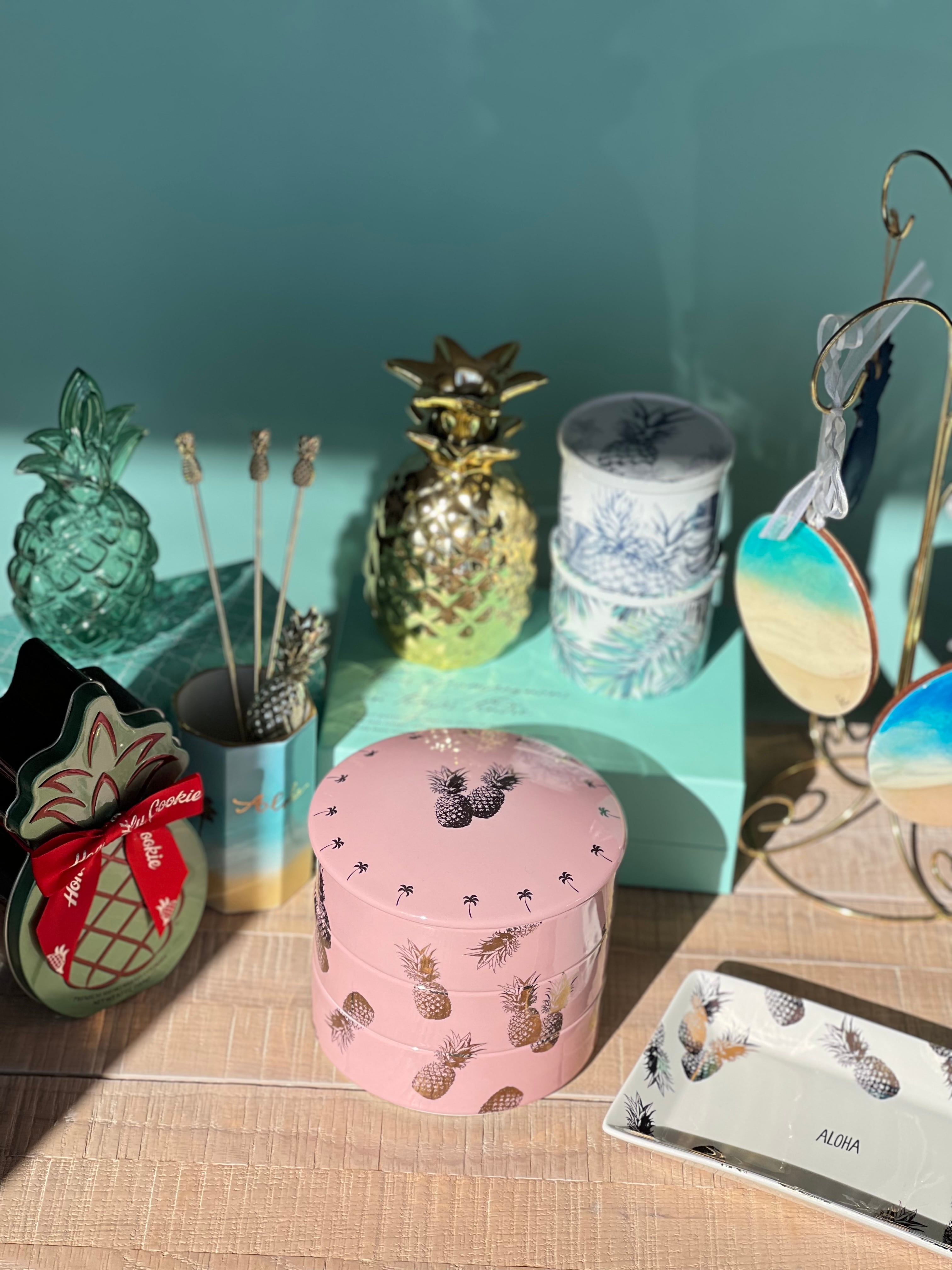 陶器で出来たお重に2回焼成で絵付した1点もののハワイアンお重です。