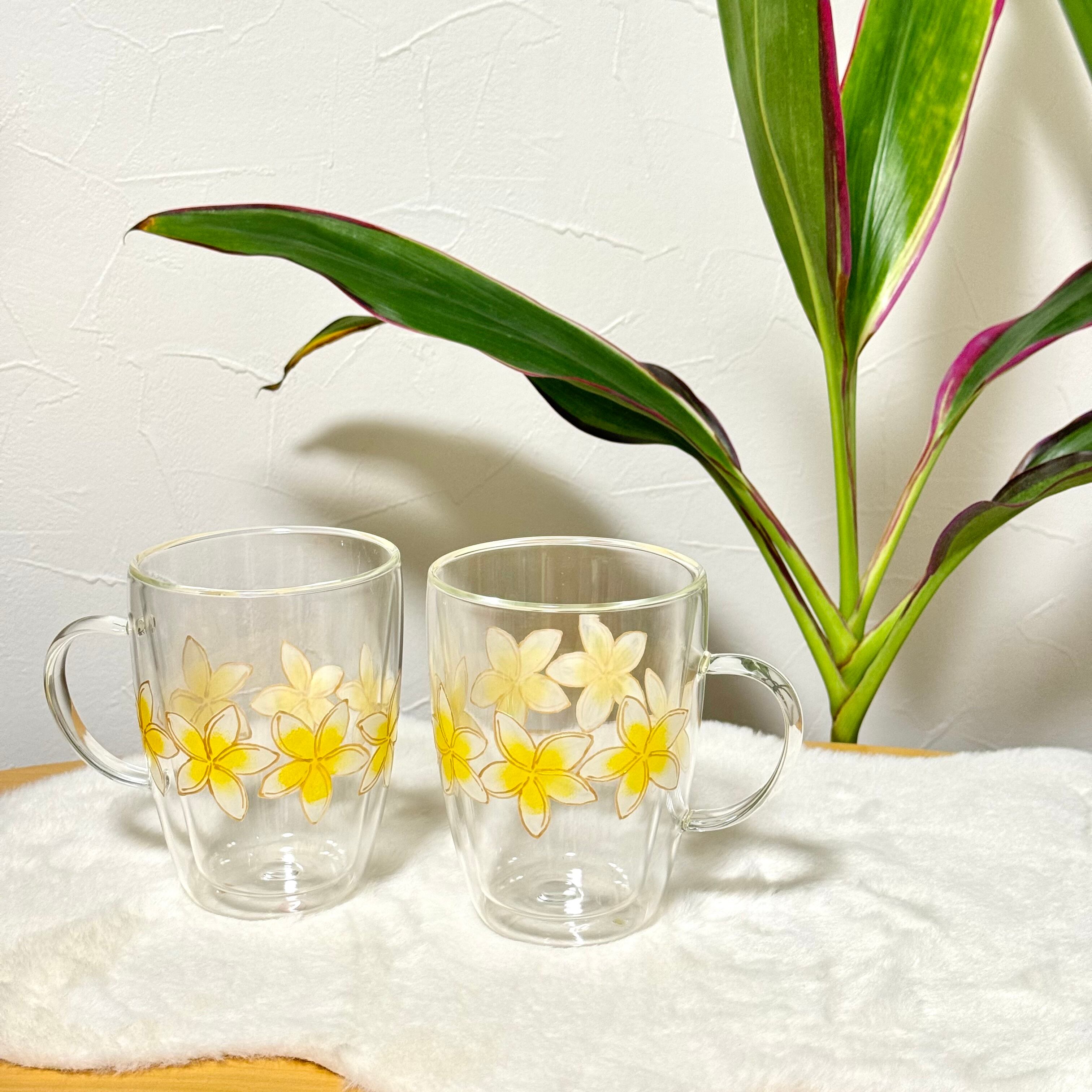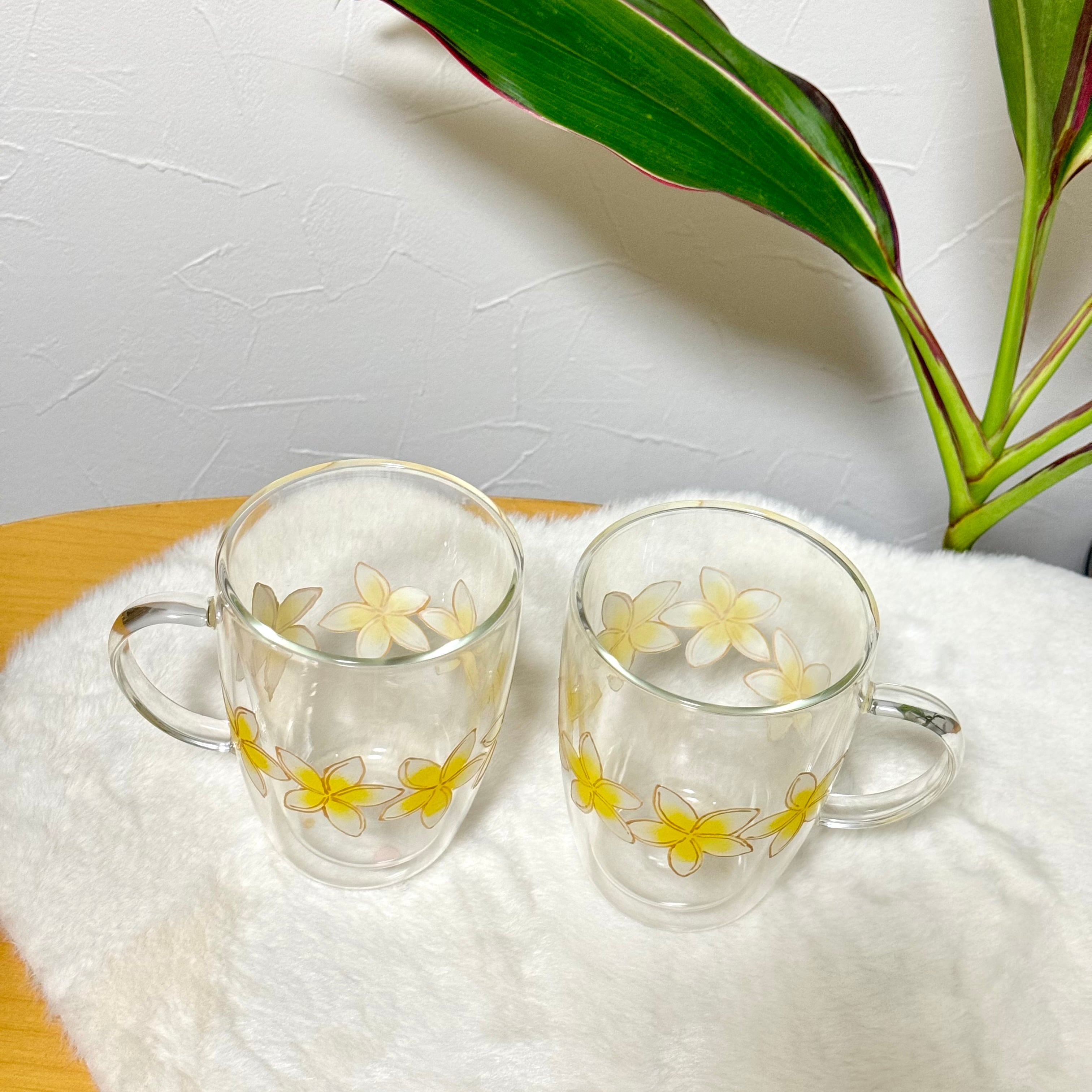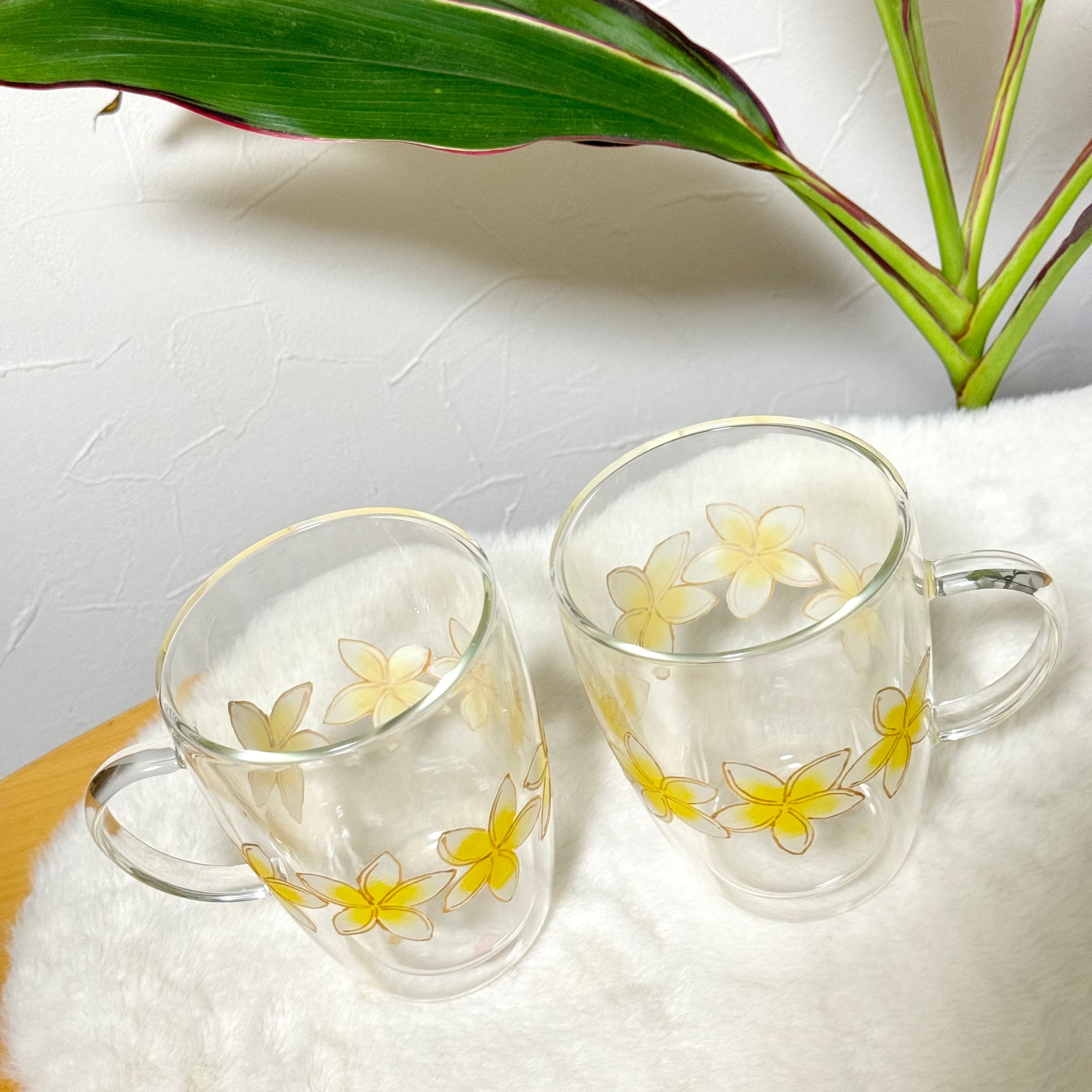 【手描き】耐熱プルメリアグラスマグ
