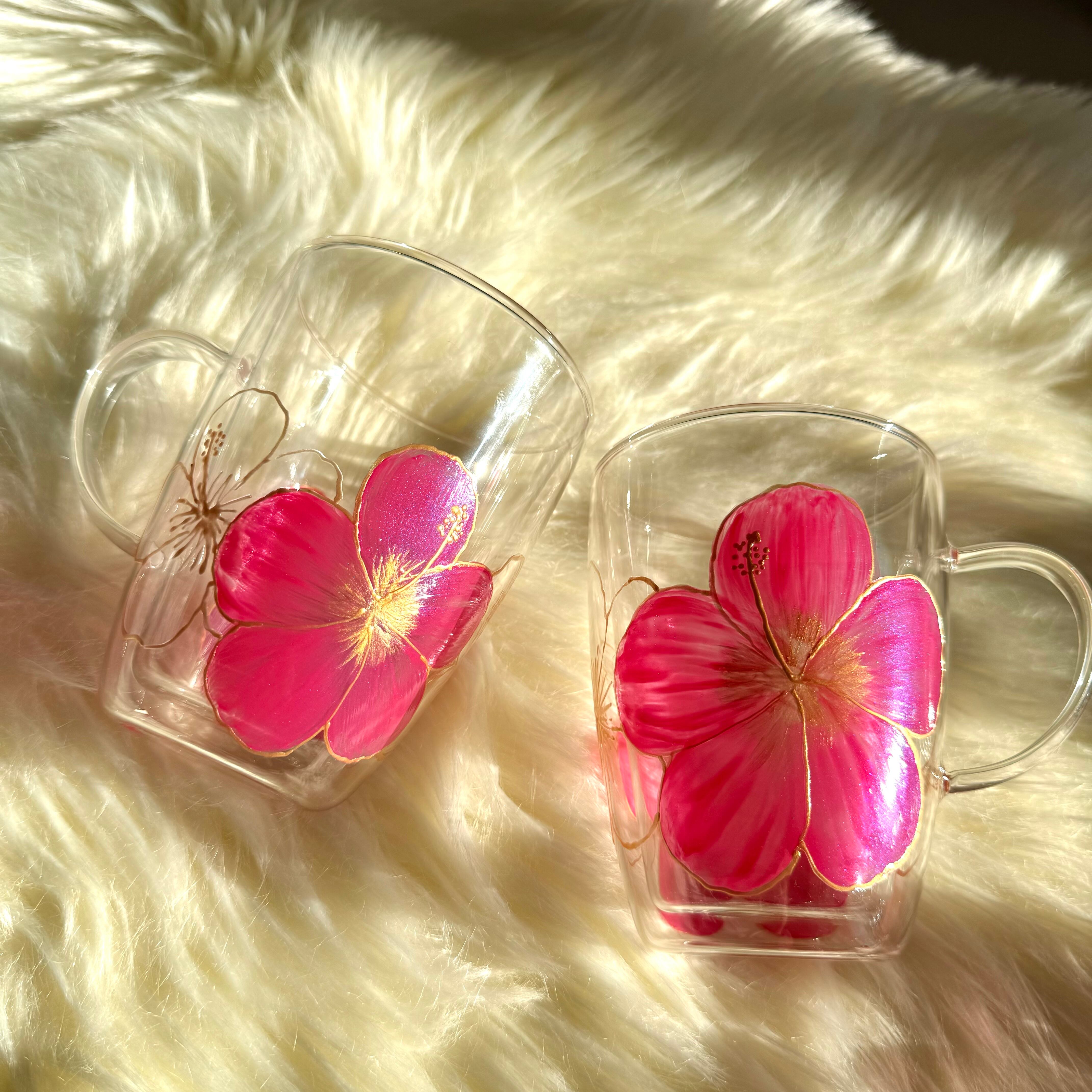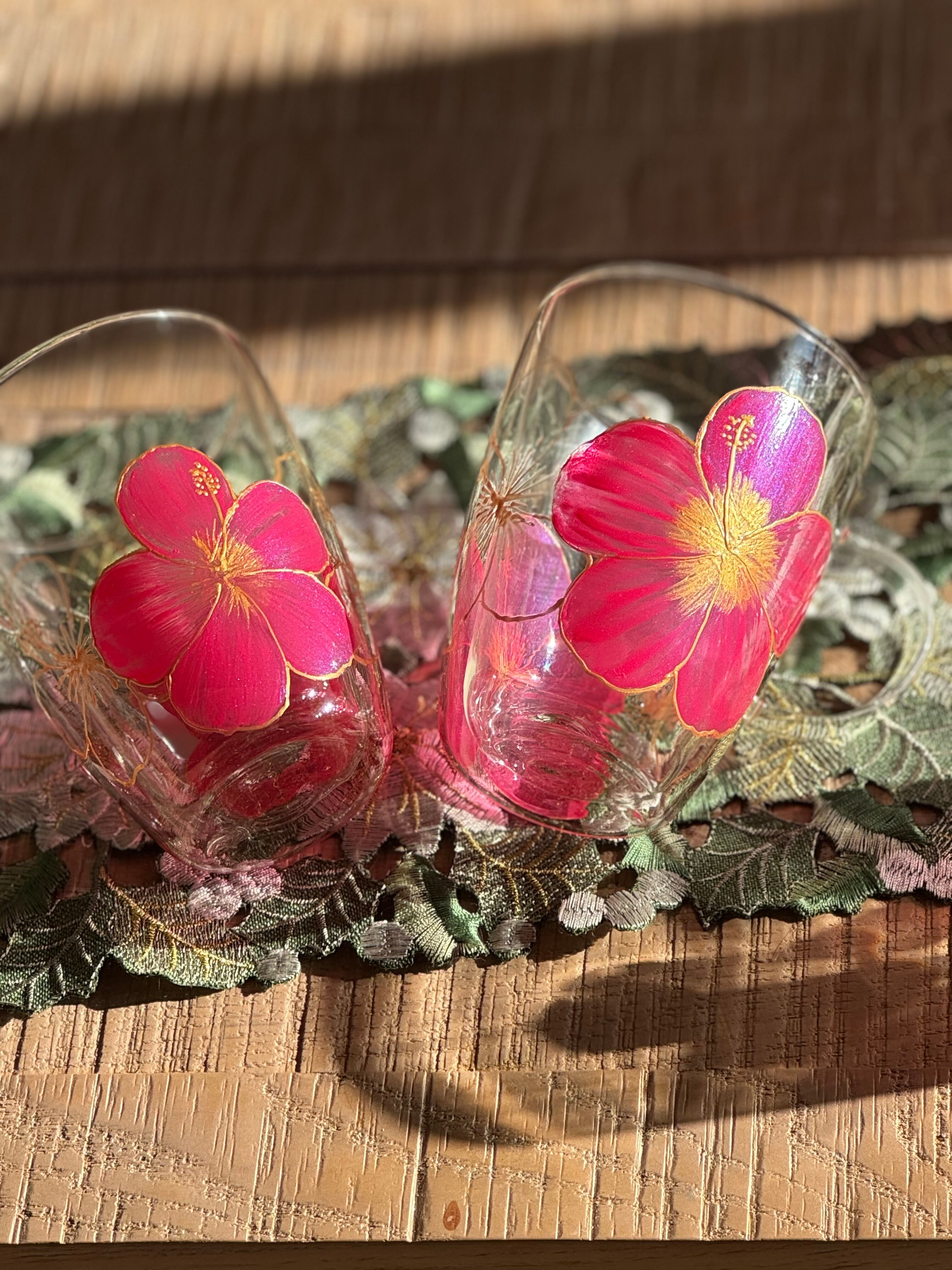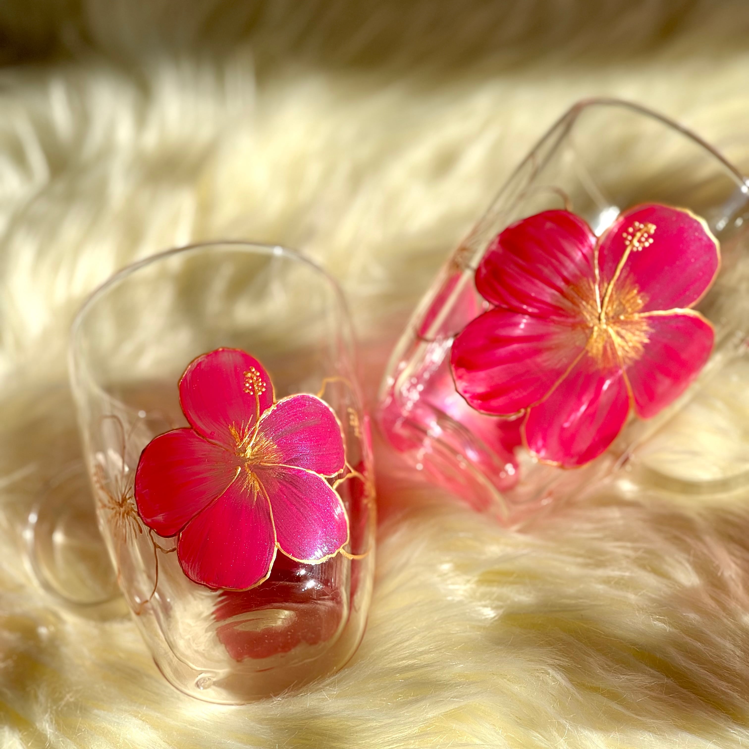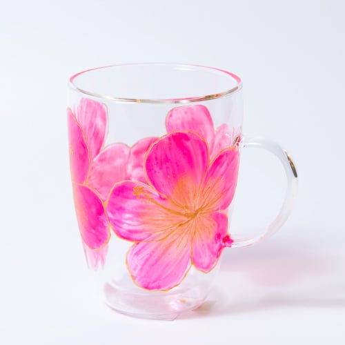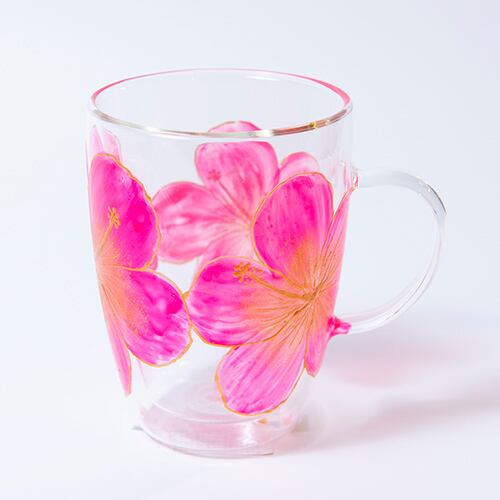 【手描き】耐熱ハイビスカスグラスマグ