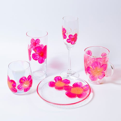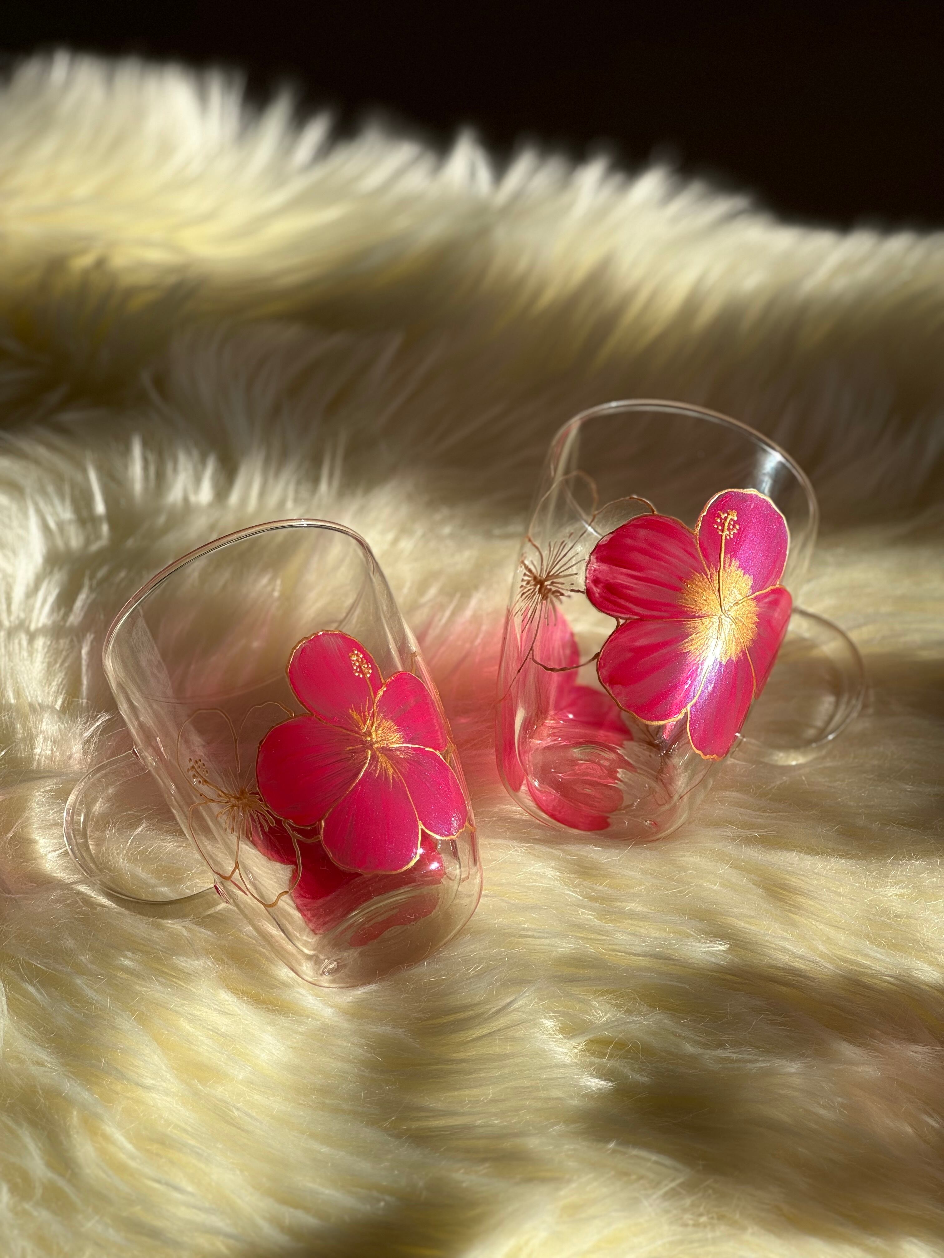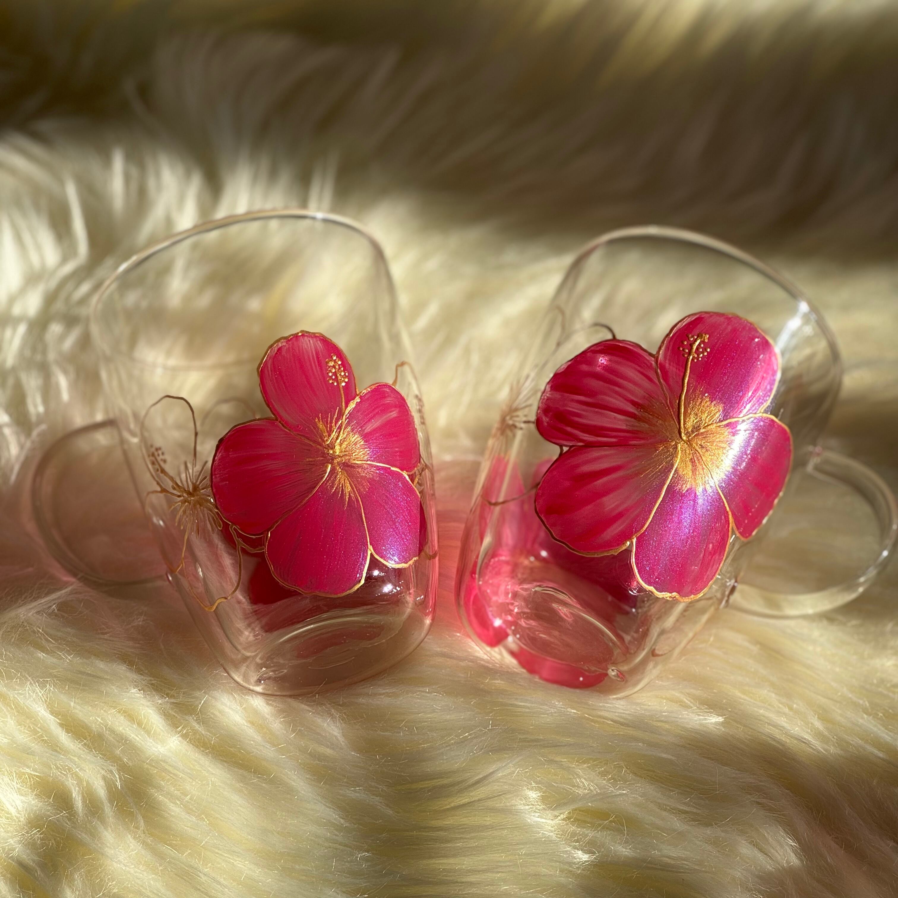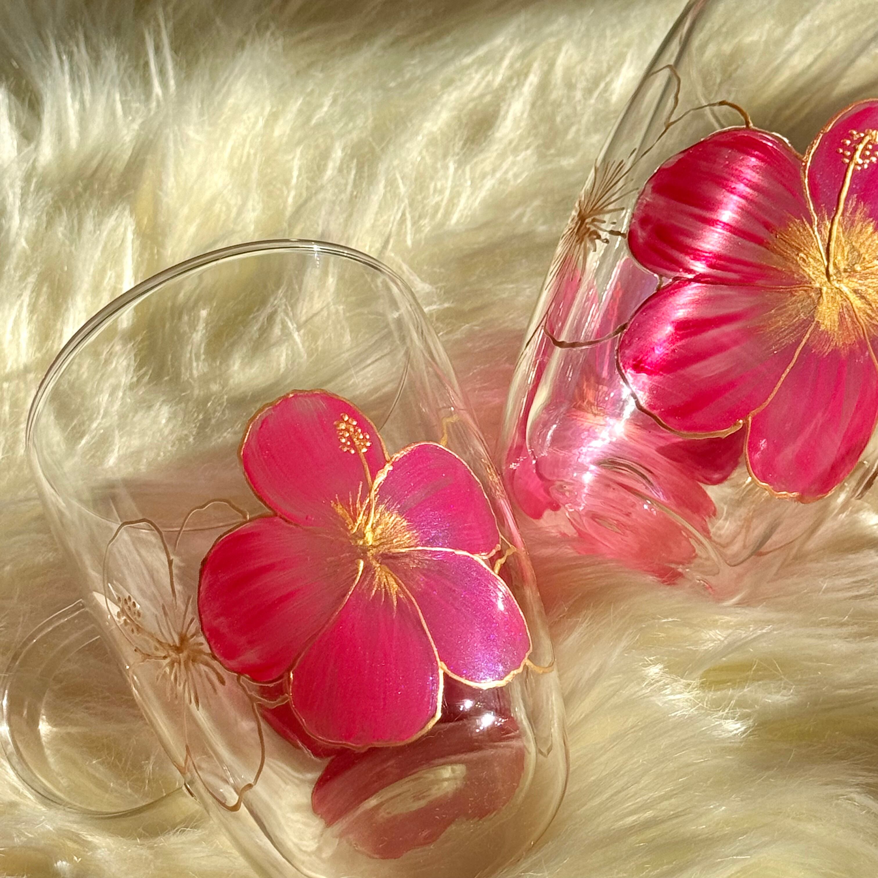 【手描き】耐熱ハイビスカスグラスマグ
