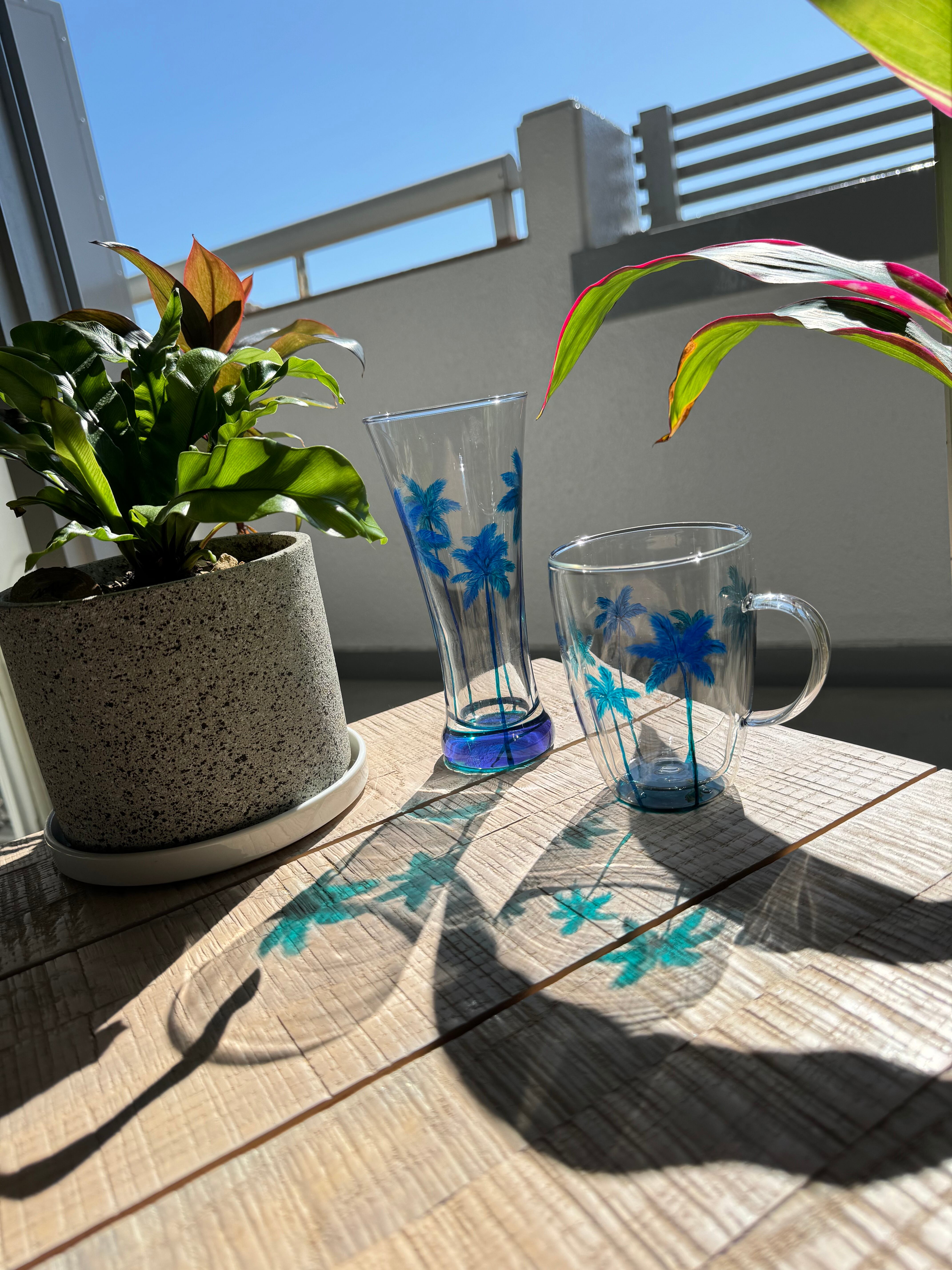 【手描き】耐熱パームツリーグラスマグ