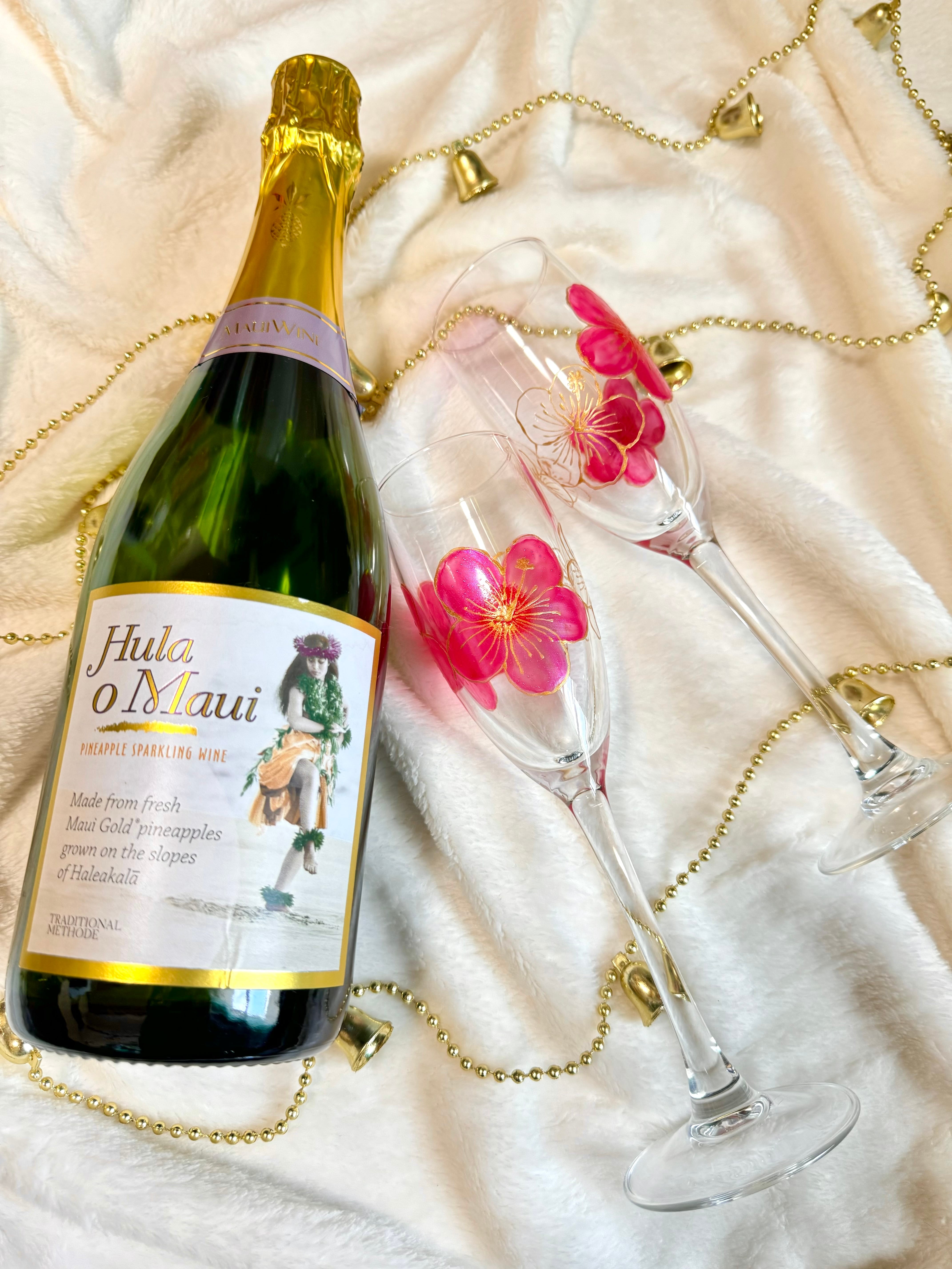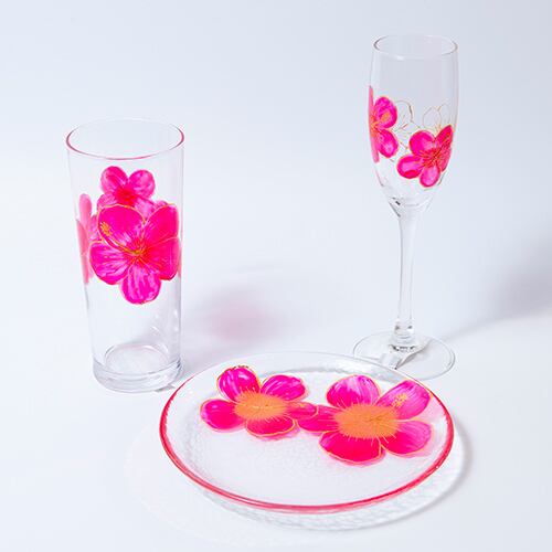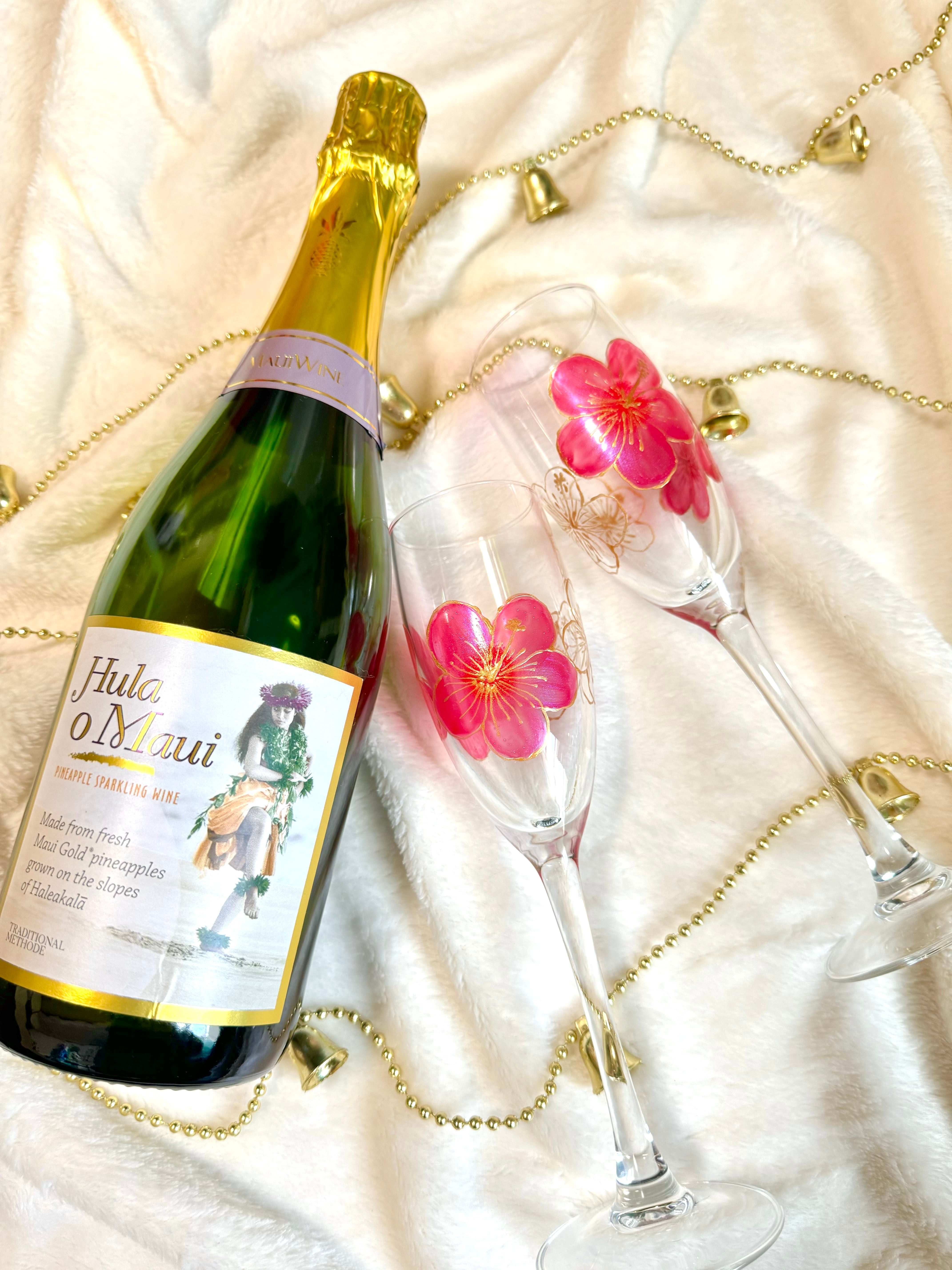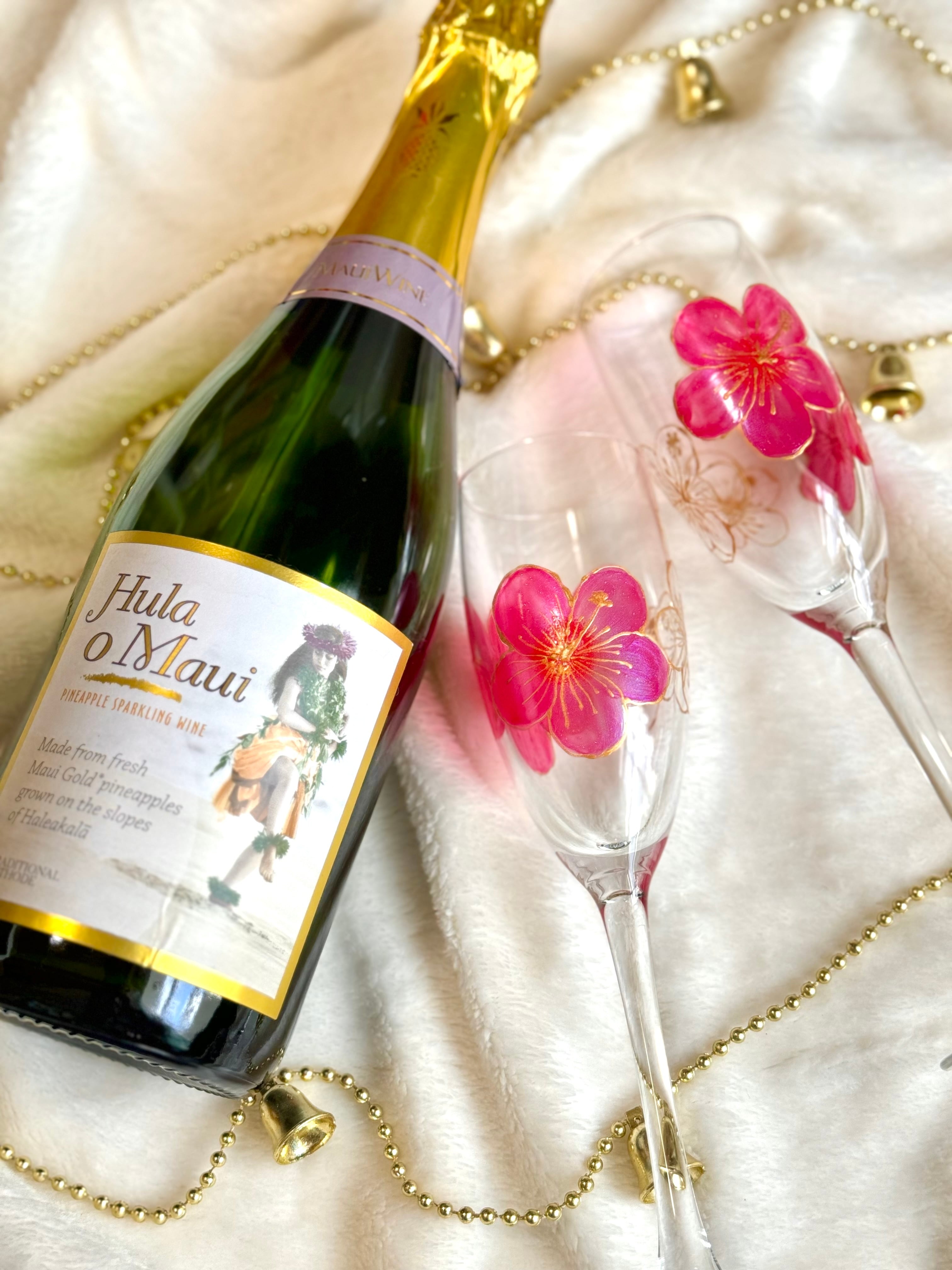 【手描き】ハイビスカスシャンパングラス