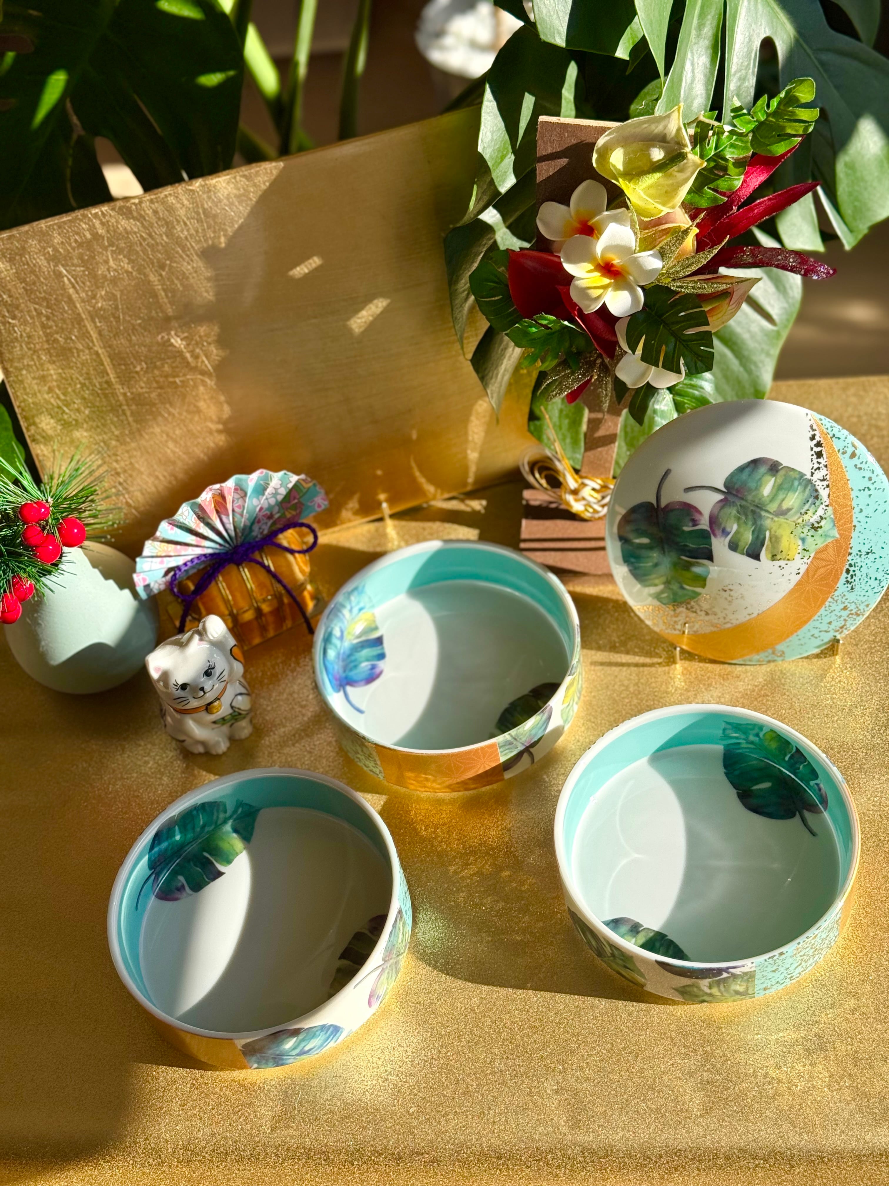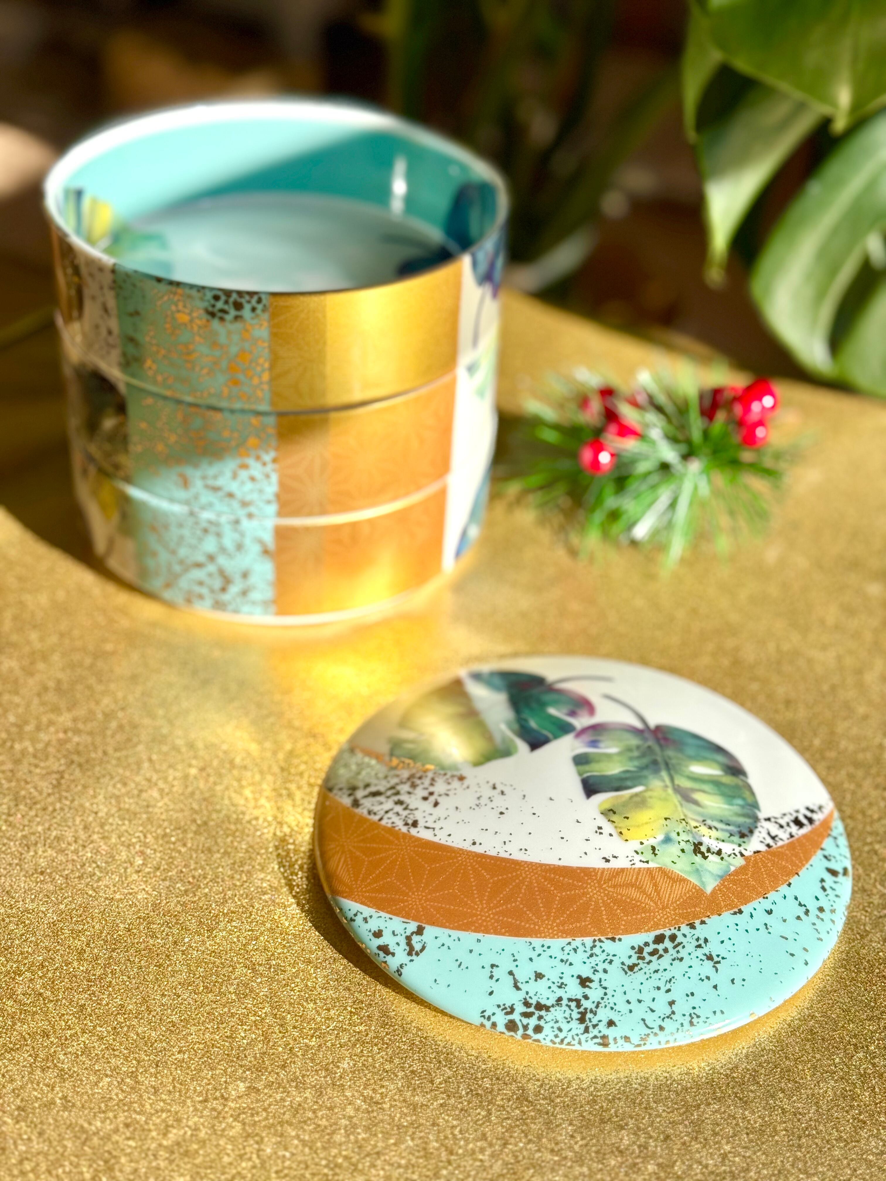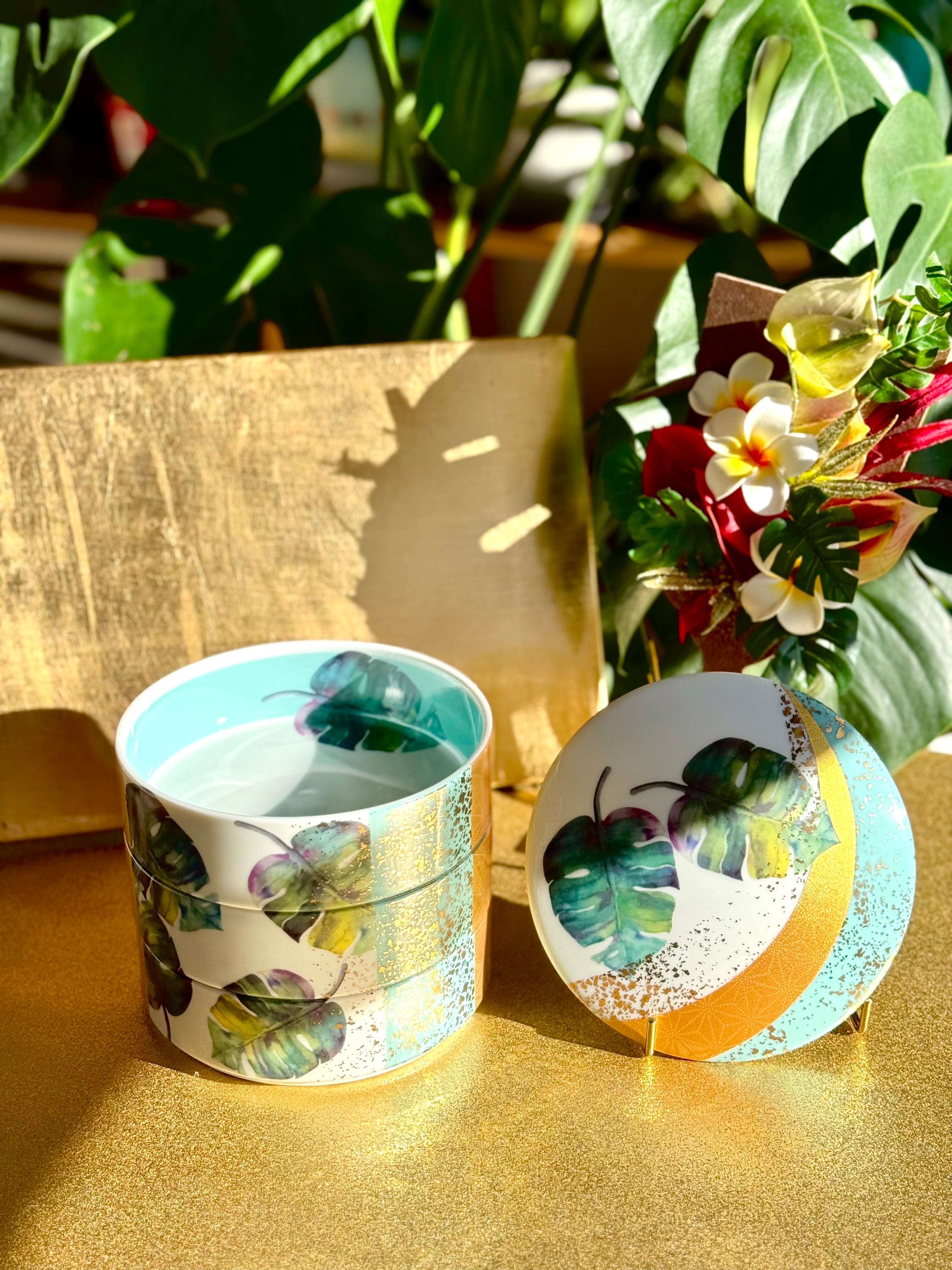 ハワイアンお重モンステラは、日常を特別に、そして特別な日をより華やかに演出するためにデザインされた素敵な商品です。温かみのある日本製の陶器素材に、ハワイの自然を感じるモンステラの美しさが映え、お料理を引き立てます。
