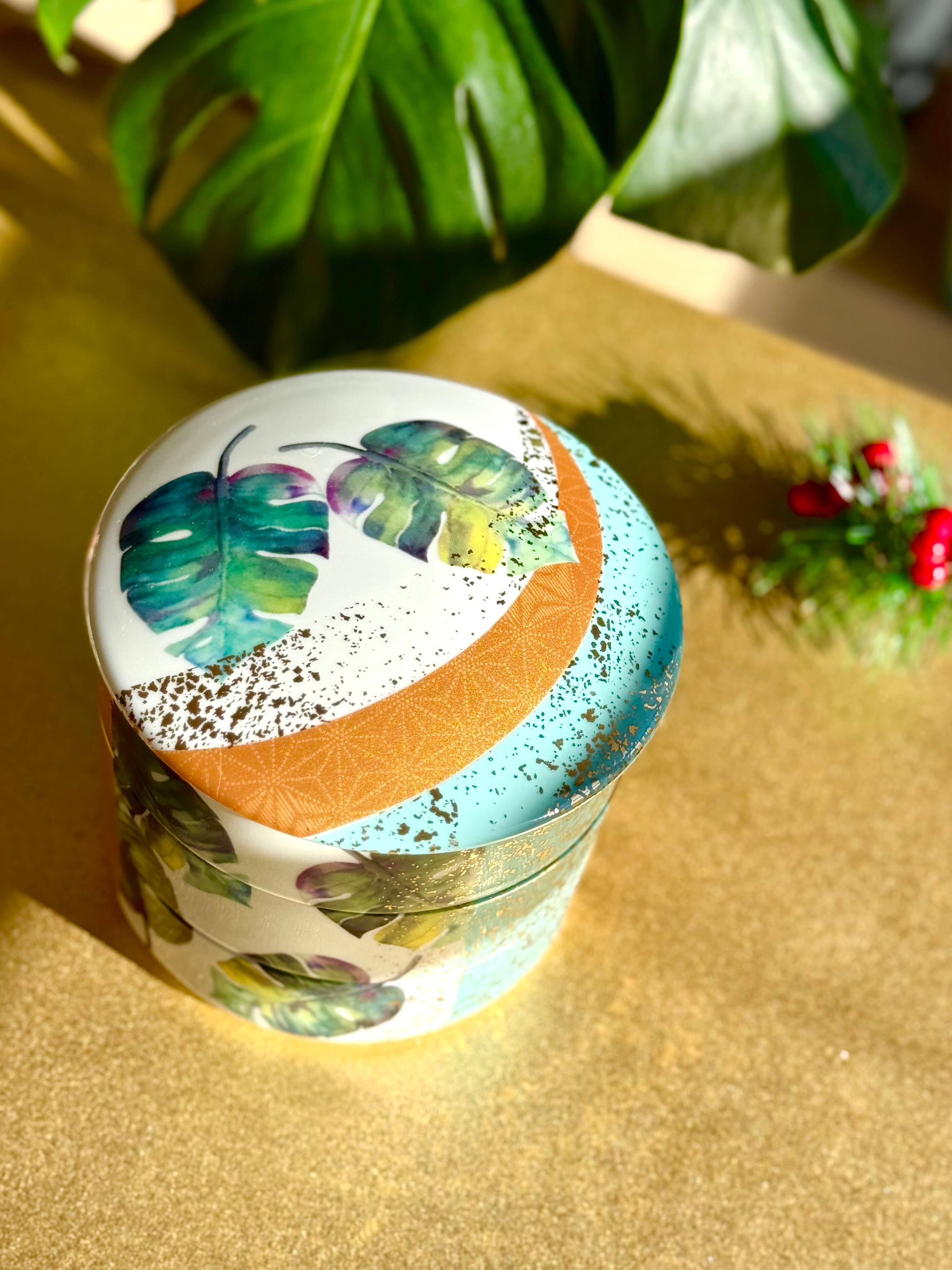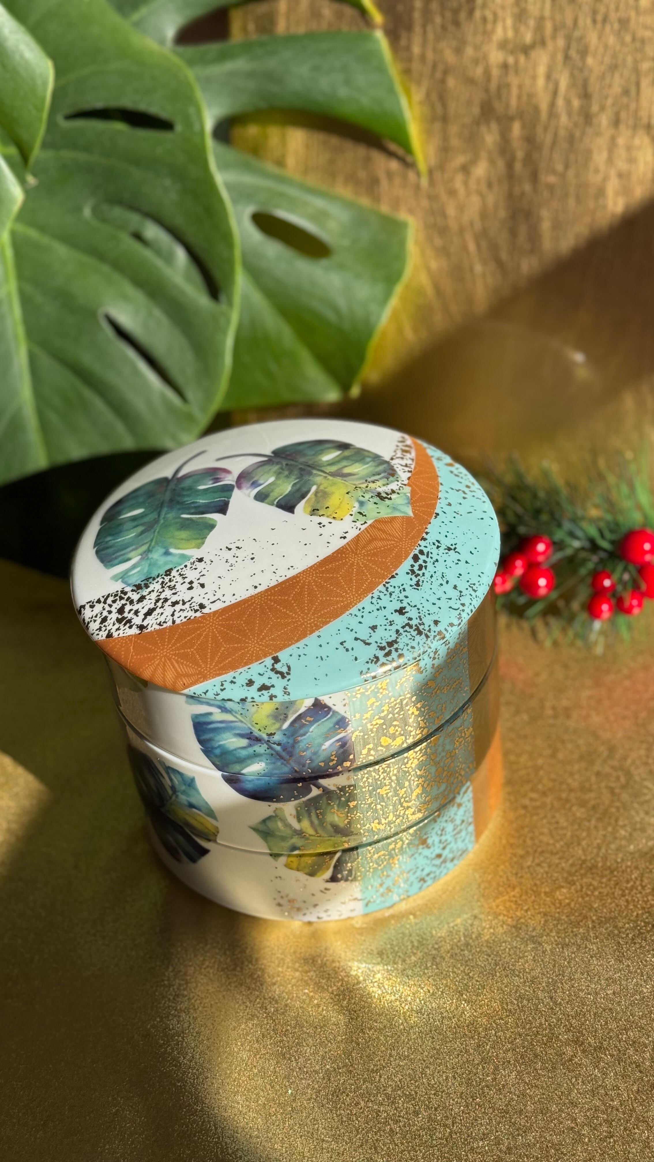 “モンステラの葉”をあしらった美しいデザインが特徴のハワイアンお重です。3段の構造で、色鮮やかな料理やデザートを華やかに演出します。アーティストの手作りにより、一点物のアイテム。お正月やポットラックパーティー、おもてなしの際にぜひお使いください。 どんなシーンでも、ハワイの雰囲気を感じられる特別なひとときを提供します。
